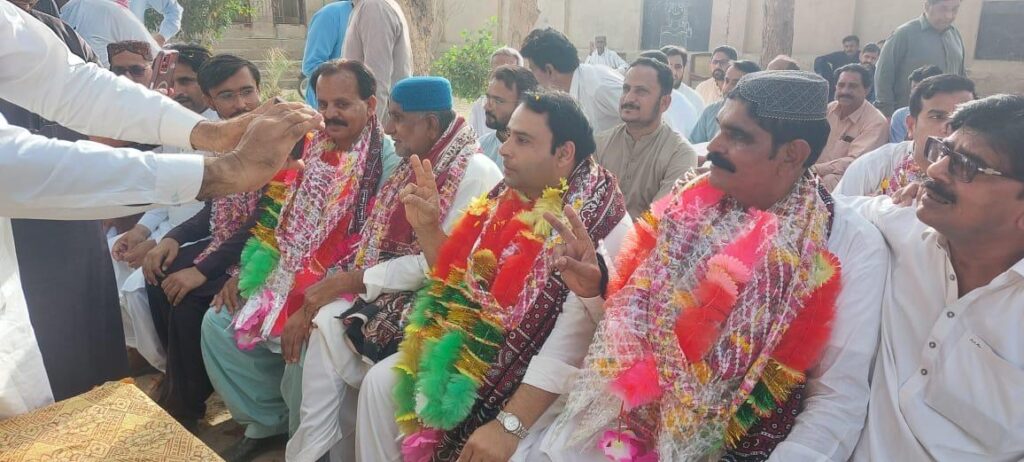 The newly elected office-bearers were congratulated by primary school teachers and honoured with Ajraks, Sindhi caps, traditional turbans, and garlands of flowers.