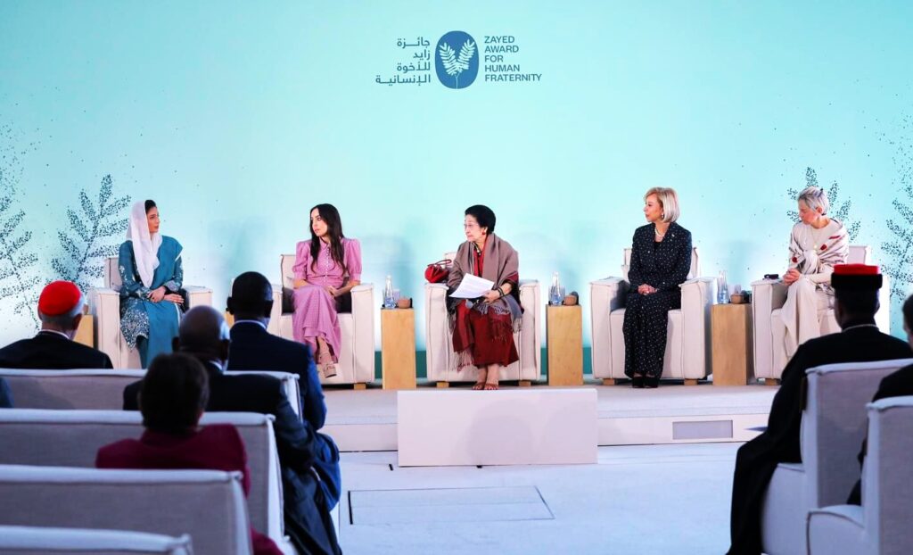 The First Lady joined a high-level panel titled “Female Leadership at the Heart of Human Fraternity”. The dialogue brought together prominent women leaders whose work has helped strengthen the social fabric of their societies. The session was moderated by Mina Al-Oraibi, editor-in-chief of The National.