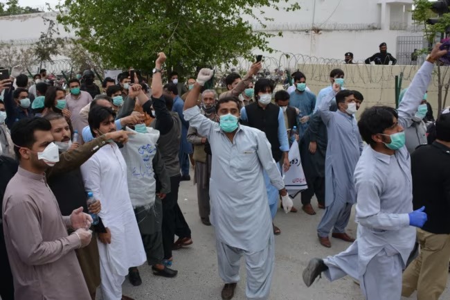 DABU: In Dadu, vaccinators who had been recruited during the Covid-19 pandemic staged a protest on Friday against their recent termination, urging the Sindh government to withdraw dismissal orders and reinstate all affected staff.