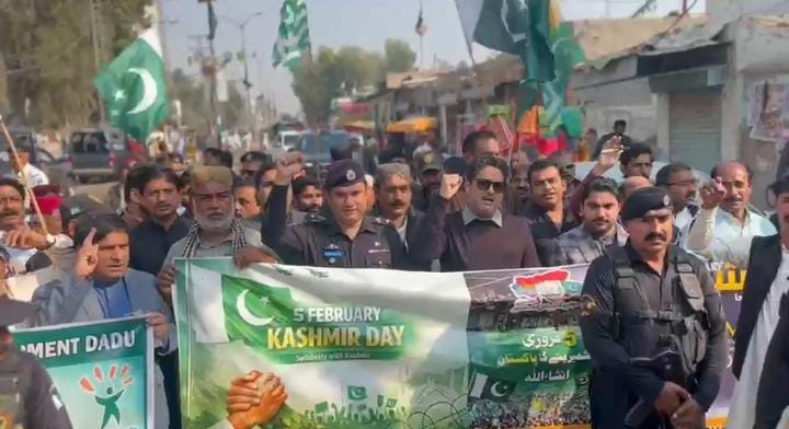 DADU: Under the leadership of Deputy Commissioner Dadu Syed Murtaza Ali Shah, a solidarity rally was taken out on February 5 to mark Kashmir Solidarity Day, starting from the Deputy Commissioner’s Office Dadu and proceeding to the Dadu Press Club.
