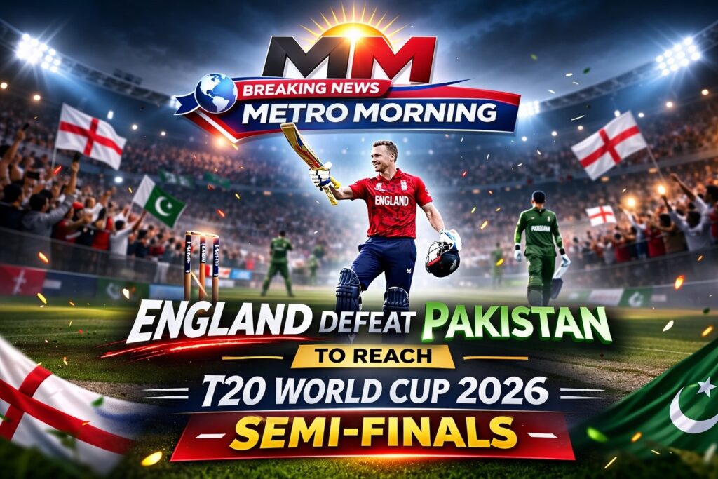 England secured a thrilling two-wicket win over Pakistan to become the first team to reach the ICC Men’s T20 World Cup 2026 semi-finals. Harry Brook’s unbeaten century guided the Two Lions to victory at Pallekele in Kandy.