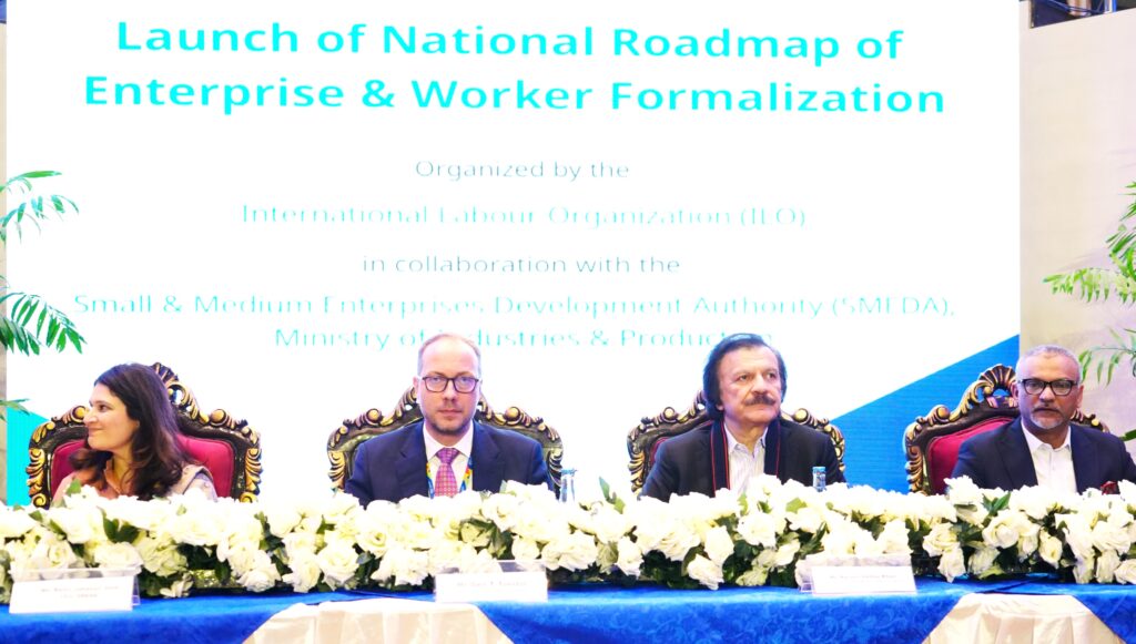 This was jointly stated by Haroon Akhtar Khan, Special Assistant to the Prime Minister on Industries and Production (MoIP), Malik Aman, Joint Secretary MoIP, Nadia Jehangir Seth, CEO SMEDA, and Geir T Tonstol, Country Director of the ILO in Pakistan, while commenting on Pakistan’s first National SME and Worker Formalization Roadmap.