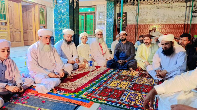 Renowned Naat reciters, including Faqeer Haji Hamid Ali Baledi Hussaini and Hafiz Gada Hussain Hussaini, performed naats in praise of the Holy Prophet ﷺ, earning appreciation from the audience.