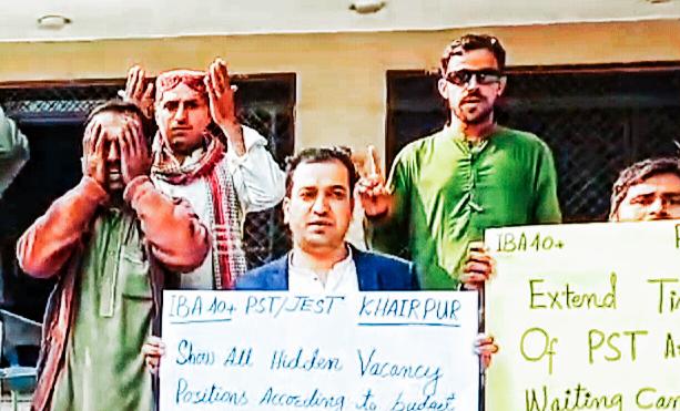 The protest, led by Ayaz Magsi, Zia-ur-Rehman Phulpoto, Atta-ur-Rehman Shaikh, and Amjad Ali Thebo, highlighted the plight of youth and candidates across Sindh who have been waiting nearly nine months for justice. Protesters warned that their patience had reached its limit and demanded immediate action.