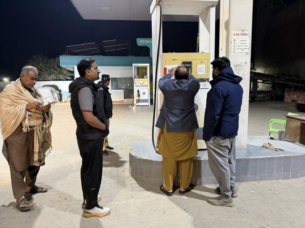 Petrol pumps found operating in violation of legal requirements and government instructions were sealed to ensure public safety and uphold the rule of law. The sealed stations included Ali Abbas Petroleum Service, Sartaj Petroleum Service, Super II Petroleum Service, and Al-Madina Petroleum Service located on the Babarlo Bypass along the National Highway.