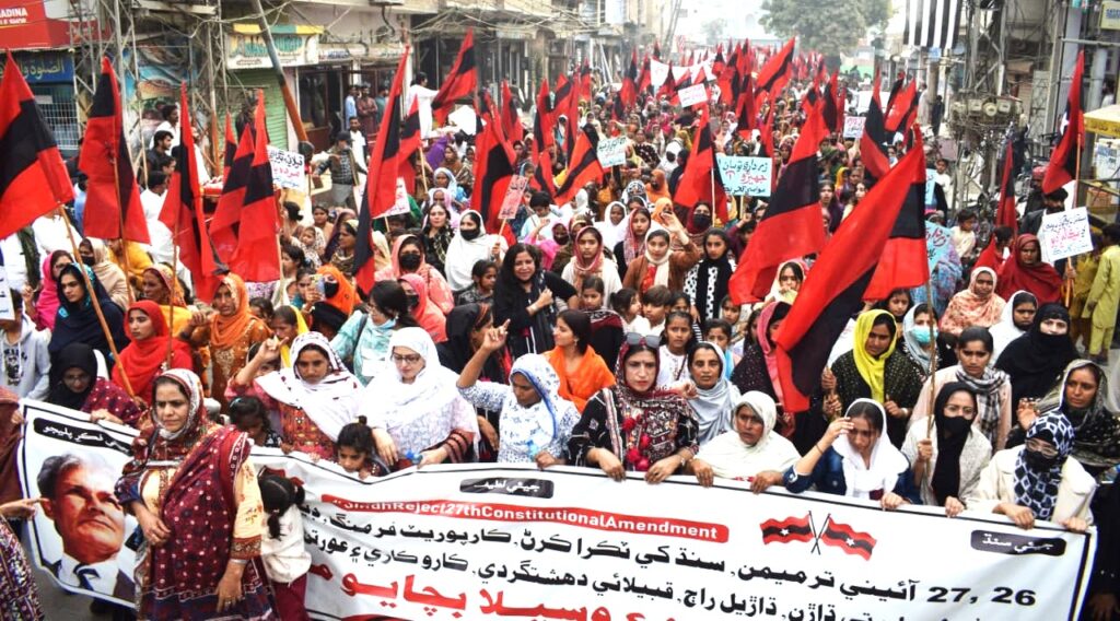 Organizers said the march reflected an ongoing struggle to protect Sindh’s natural resources, constitutional rights, and the social and economic welfare of its people.
