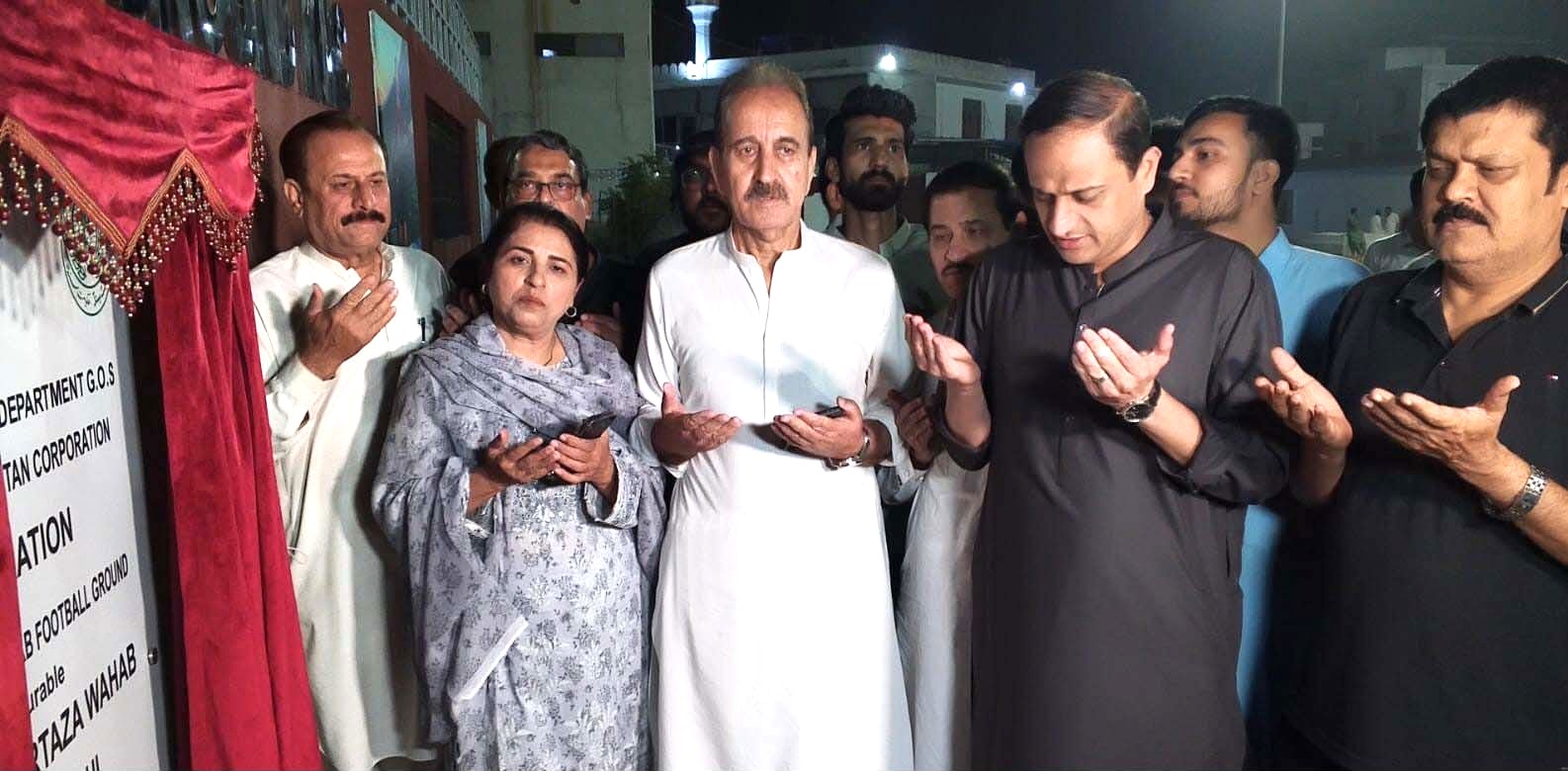 KARACHI: Barrister Murtaza Wahab inaugurated the reconstructed Shadab Football Ground in Federal B Area of Gulberg Town, aiming to promote sports and recreational activities in the city. The ceremony was attended by City Council members, other elected representatives, and numerous citizens.