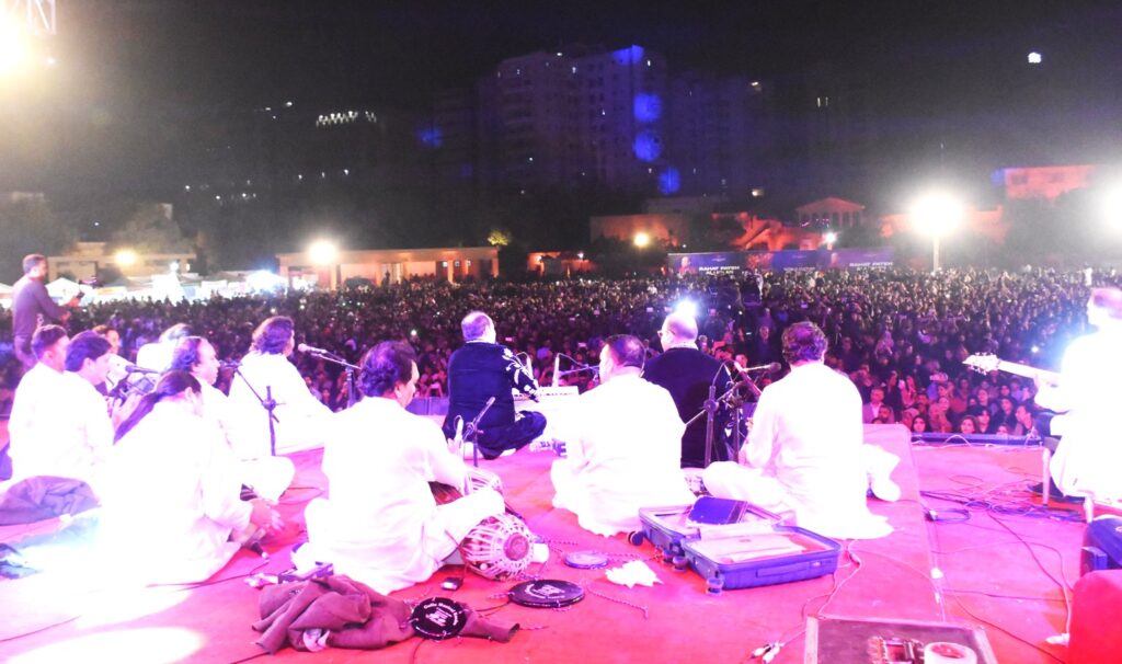Addressing the audience, Muhammad Ahmed Shah described the evening as “like Eid” for Arts Council members and their families, saying Rahat Fateh Ali Khan had been specially invited for them, as he had been for a members’ concert 15 years earlier. He credited the Sindh government for its full support and said the chief secretary had personally overseen security arrangements during the World Culture Festival.