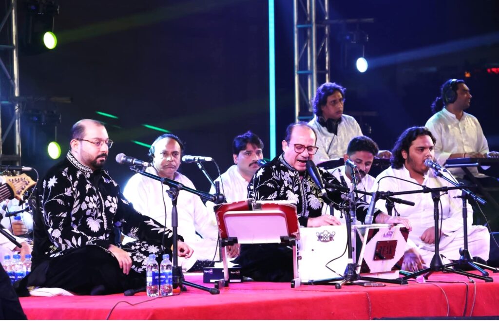 Rahat Fateh Ali Khan opened the evening with the devotional kalam Allah Hoo before performing iconic pieces associated with Ustad Nusrat Fateh Ali Khan, including Dum Mast Qalandar and Akhiyan Udeekdiyan, prompting the audience to sing, sway and dance along. Thousands attended the event, which turned into a night of celebration for Arts Council members.