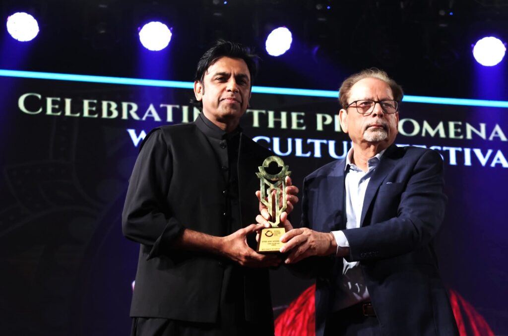 At the conclusion of the event, Muhammad Ahmed Shah presented a shield to the chief secretary in recognition of the successful organization of the World Culture Festival, along with traditional Sindhi gifts of ajrak and a Sindhi cap.