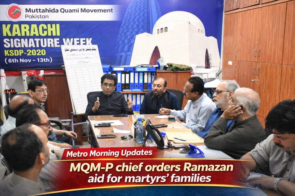 KARACHI: The chairman of MQM-Pakistan, Dr Khalid Maqbool Siddiqui, presided over a meeting of party officials at the Bahadurabad center on Friday, calling on leaders to take special measures to support vulnerable communities during the holy month of Ramazan. The session focused on ensuring financial assistance reached the families of martyrs, prisoners, and underprivileged citizens, reflecting the party’s commitment to humanitarian outreach.