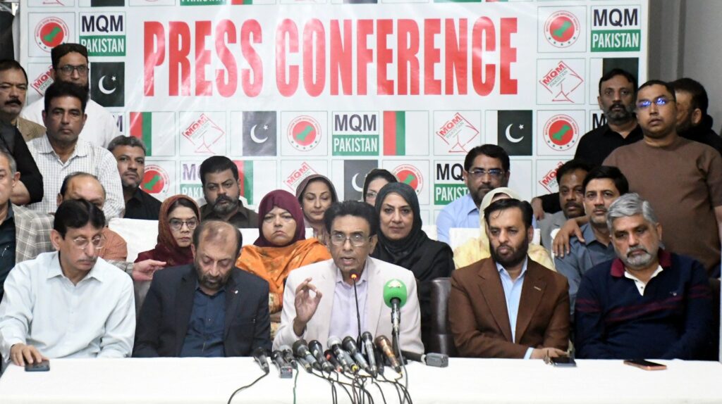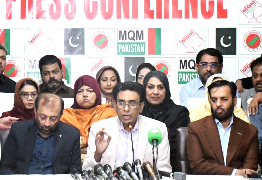 KARACHI: Dr Khalid Maqbool Siddiqui, chairman of the Muttahida Qaumi Movement-Pakistan (MQM-P), addressed a packed press conference at Bahadurabad alongside senior party leaders including Mustafa Kamal, Dr Farooq Sattar, Anis Ahmed Qaim, and Syed Amin ul Haq, warning that Pakistan stands at a critical juncture amid political instability.