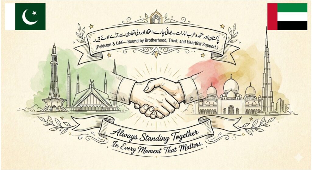 Share Facebook Twitter LinkedIn Pinterest Email A partnership defined by loyalty, compassion, and shared progress. 🇵🇰🤝🇦🇪Pakistan and the United Arab Emirates continue to uplift one another through cooperation and goodwill, strengthening a bond that grows with every step forward.