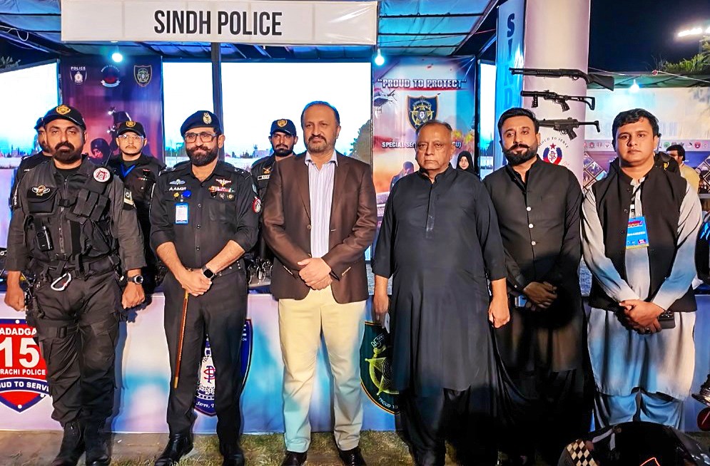 The stall brought together several key units of Sindh police, including the Special Security Unit, Police Facilitation Centers, the emergency helpline 15 (Madadgar-15), the police IT department’s “Talaash” application, traffic police and the forensic department.