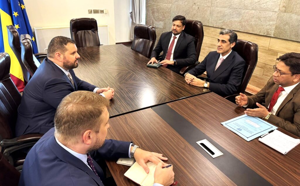 ISLAMABAD: The Ambassador of Romania in Islamabad, Dan Stoenescu, received Muhammad Awn Chaudhry, Minister of State for the Ministry of Overseas Pakistanis & Human Resource Development, for a constructive meeting on strengthening cooperation between Romania and Pakistan in labor mobility.