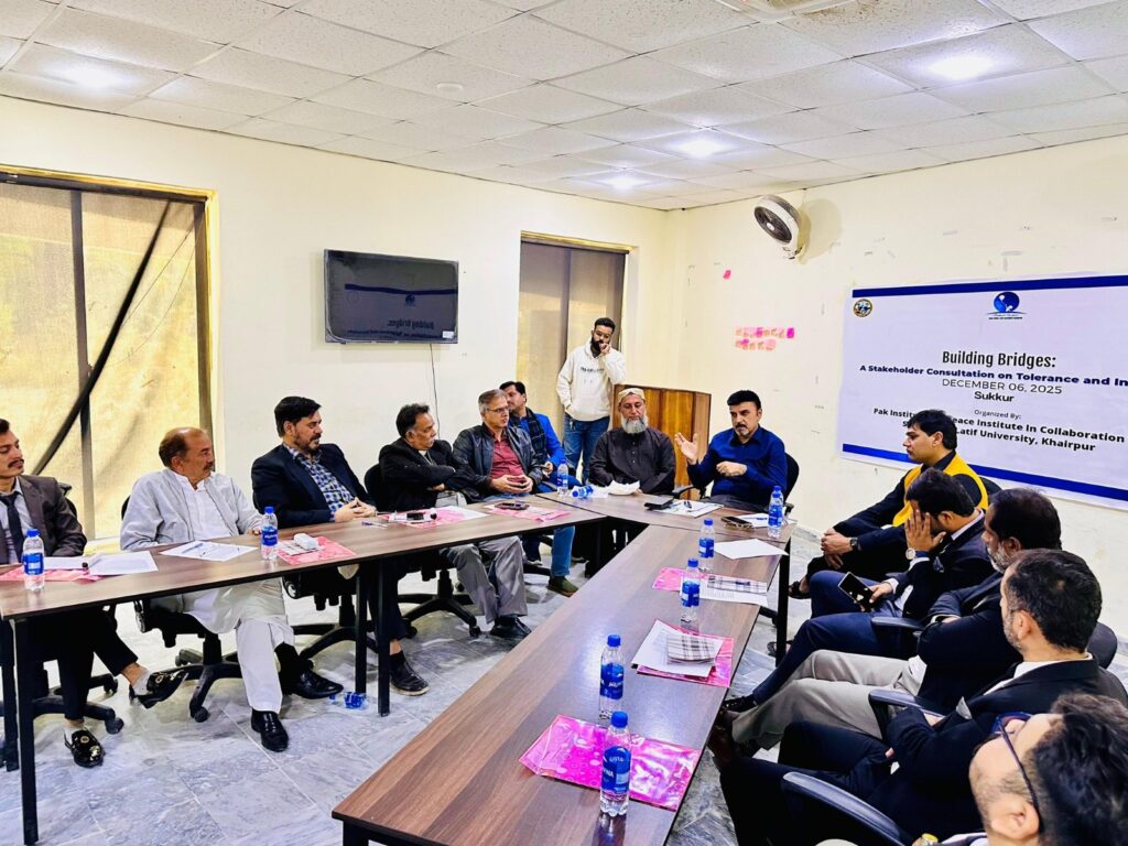 SUKKUR: Shah Abdul Latif University (SALU) Khairpur, in collaboration with the Pak Institute for Peace Studies (PIPS) Islamabad, hosted a stakeholder consultation titled “Building Bridges: A Stakeholder Consultation on Tolerance and Inclusivity” on Saturday. The event sought to address Pakistan’s declining state of religious freedom and foster actionable strategies for social harmony.