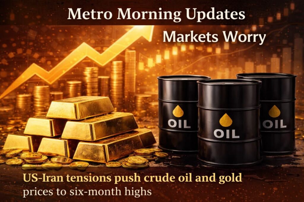 #USIranConflict #OilPrices #GoldPrices #EnergyCrisis #StockMarketNews #Geopolitics #SafeHavenInvestments #BrentCrude #USCrude #MetroMorningUpdates #GlobalEconomy #BreakingNews #MiddleEastNews