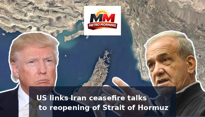 <head> US links Iran ceasefire talks to reopening of Strait of Hormuz - Metro Morning