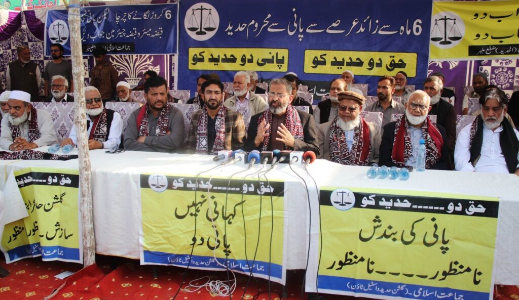 The JI leader accused officials at federal, provincial, and local levels of corruption and inefficiency. He said water supply in the area had been irregular since September 2024 and completely suspended since July 2025, despite repeated JI interventions and official correspondence.